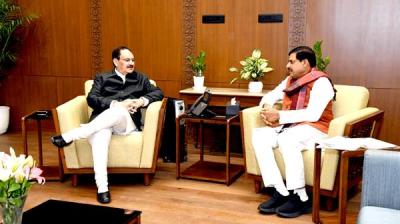 मुख्यमंत्री डॉ. यादव ने नई दिल्ली में केन्द्रीय स्वास्थ्य मंत्री नड्डा से की सौजन्य भेंट