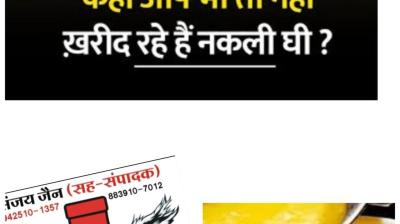 सावधान-160 से लेकर 700 रुपए प्रति किग्रा मिल रहा नकली घी-बाजार में खपाया जा रहा नकली घी,चर्बी का भी हो रहा इस्तेमाल