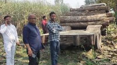 सागौन-हल्दू लकड़ी से भरा ट्रैक्टर जब्त, वन विकास निगम की कार्रवाई