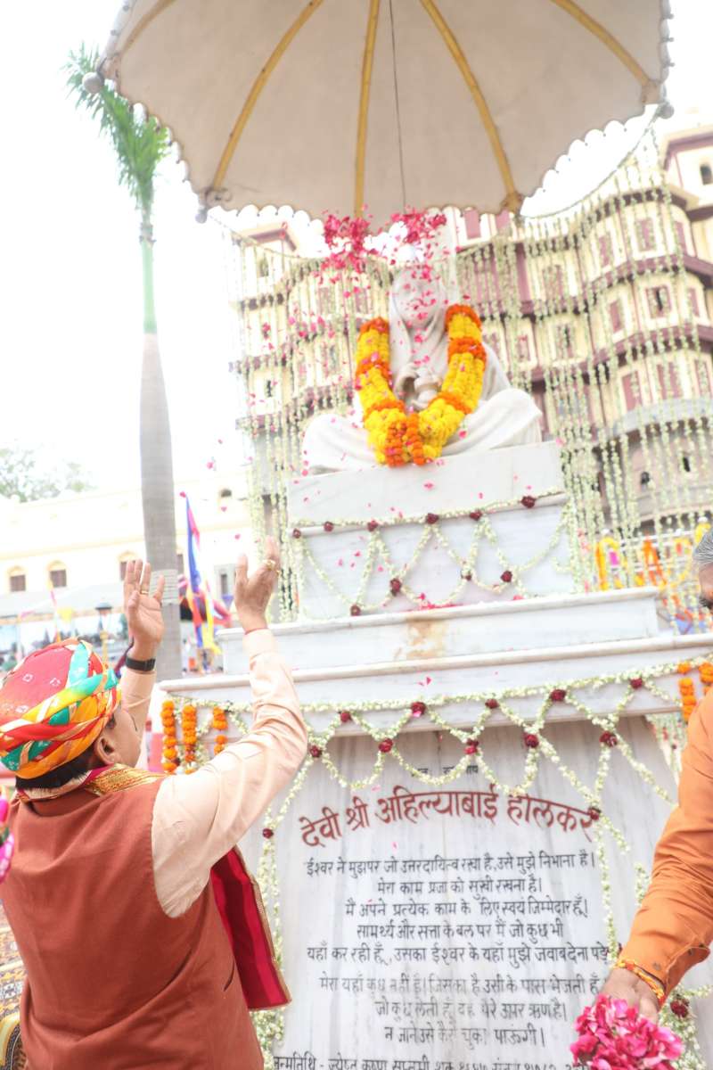 भोपाल : इंदौर के राजवाड़ा में आयोजित मंत्रि-परिषद की महत्वपूर्ण बैठक का शुभारंभ लोकमाता देवी अहिल्या बाई होल्कर के नमन के साथ किया गया। मुख्यमंत्री डॉ. मोहन यादव ने राजवाड़ा के समीप स्थित उद्यान में देवी अहिल्या बाई होल्कर की प्रतिमा पर पुष्पांजलि अर्पित की। उप मुख्यमंत्री राजेन्द्र शुक्ल तथा जगदीश देवड़ा सहित मंत्रीगण प्रहलाद सिंह पटेल, राकेश सिंह, कैलाश विजयवर्गीय, तुलसीराम सिलावट और अन्य मंत्रीगणों ने भी पुष्पांजलि अर्पित की। मुख्यमंत्री डॉ. यादव सहित मंत्रि-परिषद के सदस्यों का मालवी परम्परा के अनुरूप पगड़ी पहनाकर स्वागत-सत्कार किया गया। मुख्यमंत्री डॉ. यादव और मंत्रीगणों ने इस स्मृति को चिर स्थायी बनाये रखने के लिये सामूहिक फोटो भी खिंचवाये।