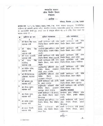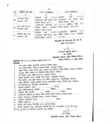 लोक निर्माण विभाग में इंजीनियर्स के तबादले, राज्य शासन ने जारी किये पदस्थापना आदेश