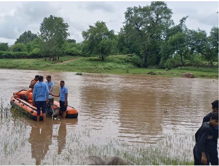 शिवपुरीः जिले में पिछले दो दिनों से झमाझम बारिश का दौर जारी है। इस दौरान लोगों की लापरवाही के चलते कई हादसे सामने आ रहे हैं। ऐसा ही एक हादसा जिले के रन्नौद कस्बे से सामने आया। गांव से निकलने वाली बसेड़ी नदी में नहाने गया 25 वर्षीय युवक सोनू जाटव लापता हो गया। देर रात तक जब वह घर नहीं लौटा तो परिजनों ने रन्नौद थाना पहुंचकर गुमशुदगी की सूचना दी। युवक के गायब होने की सूचना मिलने पर पुलिस तत्काल मौके पर पहुंची। घटनास्थल पर पहुंचने के साथ ही मामले की जानकारी एसडीईआरएफ को दी गई। शुक्रवार दोपहर करीब 3 बजे एसडीईआरएफ की रेस्क्यू टीम नदी पर पहुंची और युवक की तलाश शुरू की गई।