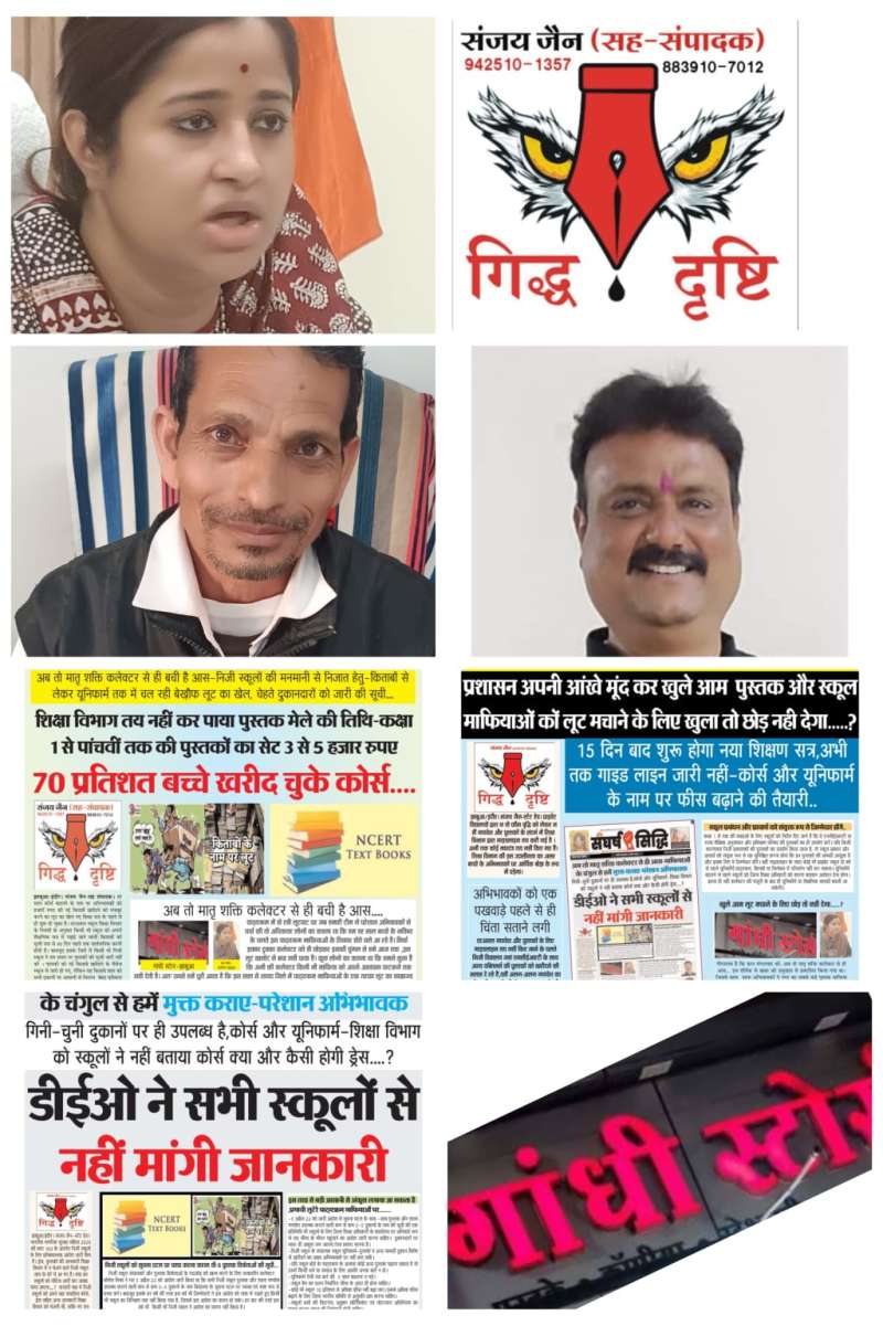उल्लखनीय है कि लगातार खबरो के प्रकाशन के बाद प्रशासन ने सिर्फ खाना पूर्ति हेतु तो नहीं जारी कर दिया था आदेश..? आदेश यह था कि निजी विद्यालयों द्वारा पाठ्यपुस्तकों, यूनिफार्म एवं अन्य शैक्षणिक सामग्री के क्रय हेतु पालकों पर अनुचित दबाव बनाने पर उनके विरूद्ध कार्यवाही की जाएगी। मजेदार बात तो पिछले 4 माह से हम प्रशासन का ध्यान ,नगर के सबसे प्रभावी पुस्तक माफिया गांधी स्टोर्स द्वारा की जा रही लूट,की खबरो से आकर्षित भी करते चले आ रहे है। सतत प्रकाशित खबरो में 18 मार्च मंगलवार को प्रकाशित खबर डीएओ ने नही मांगी सभी स्कूलों से जानकारी,लूट मचने खुला तो नहीं छोड़ दिया..? 19 मार्च बुधवार को प्रकाशित खबर-*15 दिन बाद शुरू होगा नया शिक्षण सत्र,माफियाओं को लूट मचाने के लिए खुला तो छोड़ नही देगा प्रशासन क्या.....? और शनिवार 12 अप्रैल को प्रकाशित खबर शिक्षा विभाग नहीं तय कर पाया पुस्तक मेले की तिथि,70 प्रतिशत बच्चे खरीद चुके कोर्स...... नए शिक्षण सत्र को शुरू होने को 4 माह बीतने आ चूका है,क्या प्रशासन अब इतने दिनों बाद अपनी चिर निंद्रा से जागेगा ....? उल्लेखनीय है कि उक्त निर्देश कही आनन फानन में मात्र औपचारिकता हेतु तो जारी नहीं कर दिया था..? वो भी तब,जब नए शिक्षण सत्र को प्रारंभ हुए 1 माह हो गया था। क्या प्रशासन को इतना भी पता नहीं था कि इस प्रभावी पुस्तक माफिया ने तब तक तो अपने लूट का खेल पूरी तरह से खेल लिया होगा...? और पीड़ित पालकों की गाढ़ी कमाई पर पुस्तक एवं स्कूल माफिया डाका भी डाल चुका था। इस मामले में तो शायद हमारा जिला पूरी तरह फिसड्डी साबित हो गया है,ऐसा हमारा मानना है।