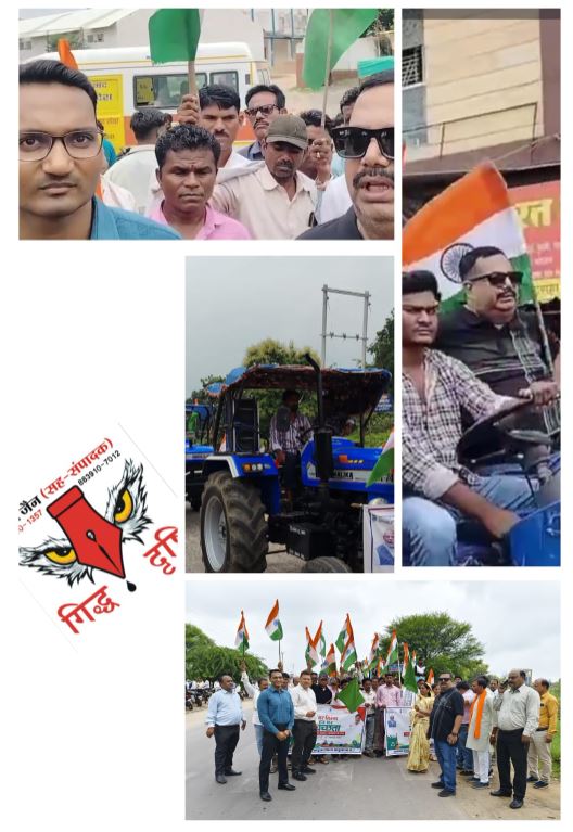 झाबुआ संजय जैन-जिला ब्यूरो। हर घर तिरंगा, हर घर स्वच्छता एवं स्वतंत्रता का उत्सव, स्वच्छता के संग अभियान के अंतर्गत कल झाबुआ नगर में एक विशाल और ऐतिहासिक तिरंगा ट्रेक्टर रैली का आयोजन किया गया। लगभग 100 से अधिक दो पहिया वाहन और 100 से अधिक ट्रैक्टर विशाल ऐतिहासिक तिरंगा रैली का हिस्सा बने।यह आयोजन स्वतंत्रता दिवस के उपलक्ष्य में जनजागरूकता बढ़ाने एवं स्वच्छता के प्रति नागरिकों को प्रेरित करने के उद्देश्य से किया गया।