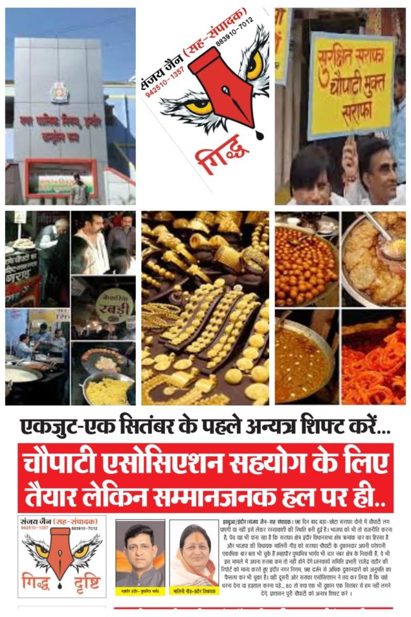 चौपाटी दुकानदारों का कारोबार भी प्रभावित न हो इस दिशा में नगर निगम,जिला प्रशासन, जनप्रतिनिधियों और दोनों एसोसिएशन के पदाधिकारियों को बैठा कर सर्व सम्मत हल निकालना चाहिए। नगर निगम की समिति ने रिपोर्ट देकर अपना काम जरूर पूरा तो कर लिया,लेकिन यह नगर निगम वार्डों में दुकानदारों के लिए मार्केट बनाने की घोषणा पर काम नहीं कर पाया है। चौपाटी दुकानदारों को लालबाग, गांधी हाल,रिवर साइड रोड या अन्य कहीं भी जगह दे, इन दुकानदारों की सुरक्षा के साथ ही उन क्षेत्रों में असामाजिक तत्व सक्रिय ना हो इस पर भी पहल करना होगी। सराफा दुकानदारों ने जिन हजारों बंगाली कारीगरों को अपनी इमारतों में किराए पर कमरे दे रखे हैं उन सब को भी कहीं शिफ्ट करना चाहिए। नगर निगम- सराफा व्यापारी मिल कर पीपीपी मॉडल पर कॉम्प्लेक्स की दिशा में काम कर सकते हैं।