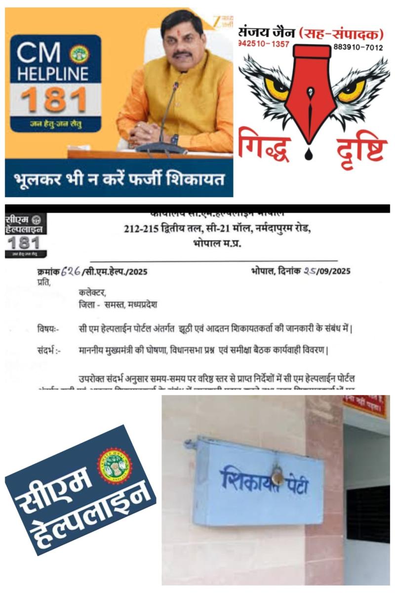 अब सीएम हेल्पलाइन पर झूठी शिकायत दर्ज ओर ब्लैकमेल करने वालो पर होगी कार्यवाही-सभी कलेक्टर को मिले निर्देश,तैयार करें सूची