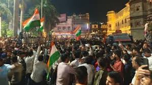 इंदौर|टी-20 वर्ल्ड कप फाइनल में भारत की जीत के बाद शहर में जश्न का माहौल बन गया। बड़ी संख्या में लोग जश्न मनाने के लिए राजबाड़ा पहुंचने लगे। भीड़ बढ़ने पर पुलिस ने सुरक्षा व्यवस्था के तहत बैरिकेड लगाकर लोगों को रोकने की कोशिश की, जिससे कुछ लोग नाराज हो गए और वहां धक्का-मुक्की की स्थिति बन गई।