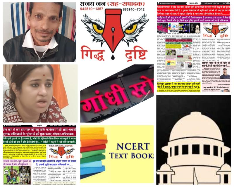 अपनी चिर परचित कर्त्यव्य निष्ठ कार्य शैली से पहचाने जाने वाले तत्कालीन कलेक्टर सोमेश मिश्रा ने 5 अप्रैल 22 को जो सख्त आदेश जारी किया था,प्रशासन से मात्र उसी आदेश को संसोधित करते हुए एक सख्त आदेश जारी करने की ही दरकार है। प्रशासन इस लूट-खसोट को रोकने हेतु गंभीर है,तो इस साल अभी कुछ भी नहीं बिगाड़ा है समय रहते हुए आदेश जारी कर स्वत: जाकर इन दुकानों का निरिक्षण भी करे की पाठ्यक्रम पांचो दुकानों पर उपलब्ध है भी की नहीं ? उल्लेखनीय है कि हमने 25 फरवरी बुधवार अब कम से कम इस साल तो मातृ शक्ति कलेक्टर से ही आस और 17 मार्च मंगलवार को जिम्मेदार प्रशासन को मात्र एक सख्त आदेश जारी करने की है दरकार नामक शीर्षक से मुख्य पुस्तक माफिया गांधी स्टेार (राजकुमार गांधी) के नाम सहित समाचार को प्रकाशित कर प्रशासन का ध्यान इस और आकर्षित करने के बावजूद भी आज दिनांक तक प्रशासन ने निजी स्कूलों पर अंकुश लगाने हेतु कोई कार्यवाही नहीं की है। अभी भी देर नहीं हुई है,यदि दृढ़ इक्छाशक्ति से प्रशासन कठोर कार्यवाही करे,तो अभी भी लगभग 75 से 80 प्रतिशत अभिभावक को ये लूटरे लूटने में किसी भी हाल में कामयाब नहीं हो सकते है। आखिर क्यों प्रशासन ने पुस्तक माफिया को लूट-खसोट करने के लिए खुला छोड़ रखा है? यह तो वे ही बेहतर बता सकते है। मातृ शक्ति कलेक्टर नेहा मीना को इस मामले में तुरंत संज्ञान लेकर,इस खेल में संलिप्त अधिकारियों पर तत्काल कार्यवाही करना चाहिए।
